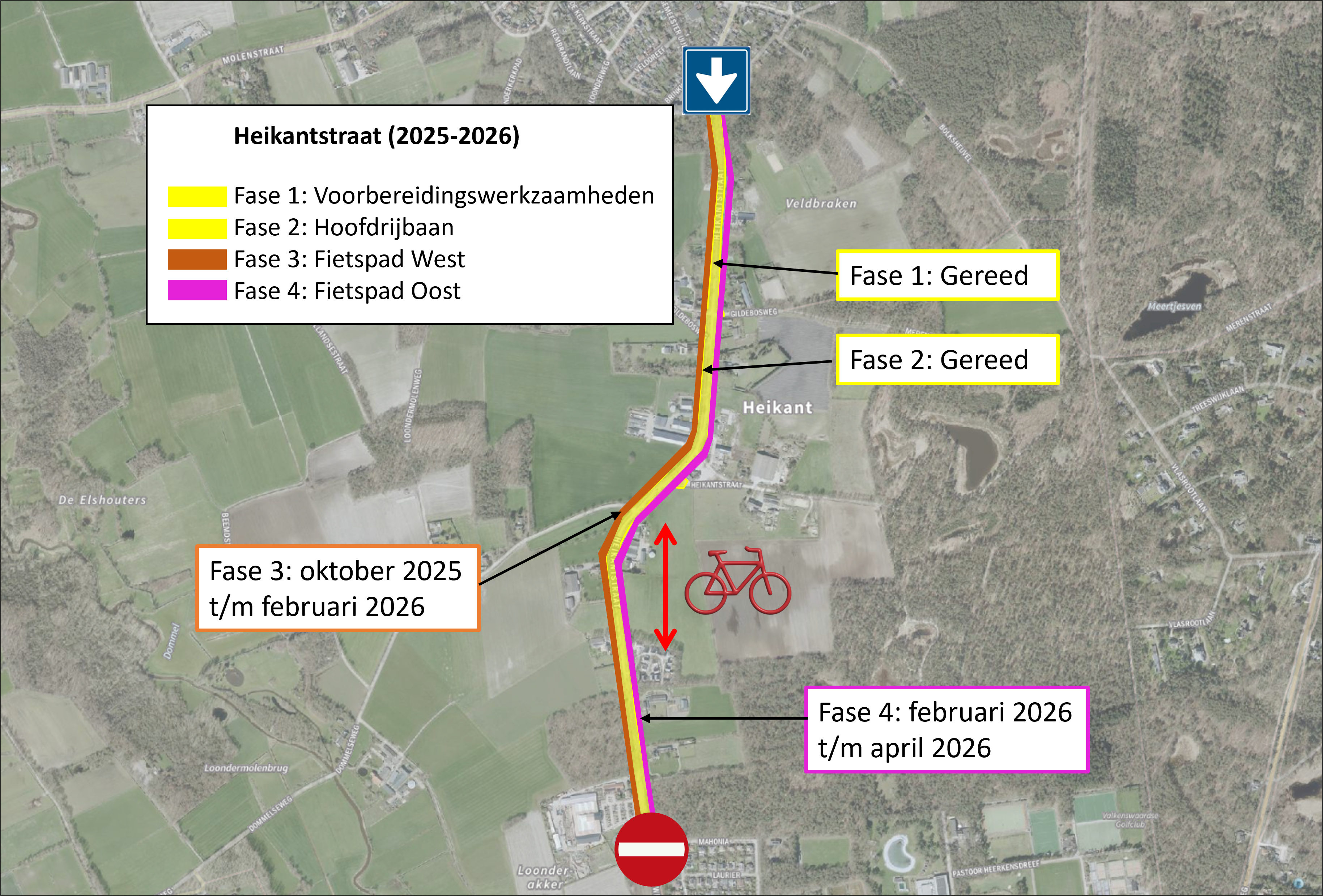 De herinrichting van de Traverse-Zuid, de Traverse-Noord, de Eindhovenseweg en het Vitaal Dorpshart Aalst is klaar. Ook de herinrichting van Michiel de Ruyterstraat en omgeving is afgerond. De totale planning voor de herinrichting van de Heikantstraat vindt u hieronder.